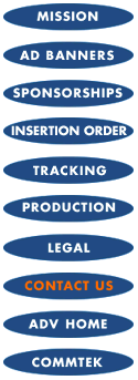 For ad banners or sponsorship information, please contact: Jodi Kuraner Advertising Marketing Manager CommTek Communications Corporation 9302 Lee Highway, Suite 600 Fairfax, VA 22031 Tel: (703)251-3000 Fax: (703)251-3010 Web Site: www.directmagazine.com E-mail: [email protected]